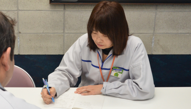 毎年一回、安全担当部門、直属の上司、本人を交えて、本人の障がいの状態に変化が無いか、会社生活を行う上で施設に危険な状態がないか安全の確認を行っています。