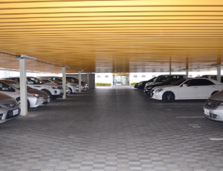 駐車場にはカーポートが設置されており、梅雨時期でも安心です。車から下りた後も、他の車にぶつかることなく移動可能な幅を設けています。