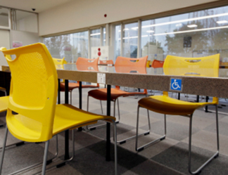 食堂は、車椅子や杖を使用した方がぶつかることのない余裕のある広さです。