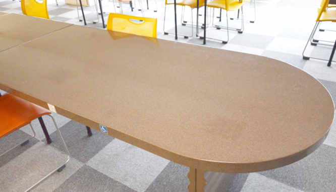 人工大理石製の重いテーブルを設置することで、杖を使用している方の身体を支える役割を担っています。